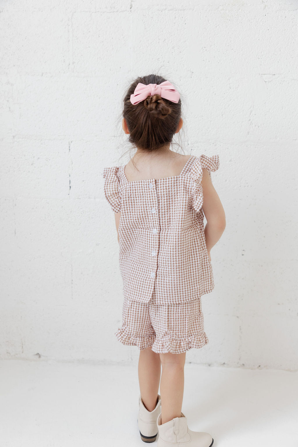 Designed with comfort and movement in mind, this baby and toddler set is ideal for everyday play, family outings, or special occasions. The soft neutral gingham print adds a timeless, gender-neutral touch that’s easy to mix and match.